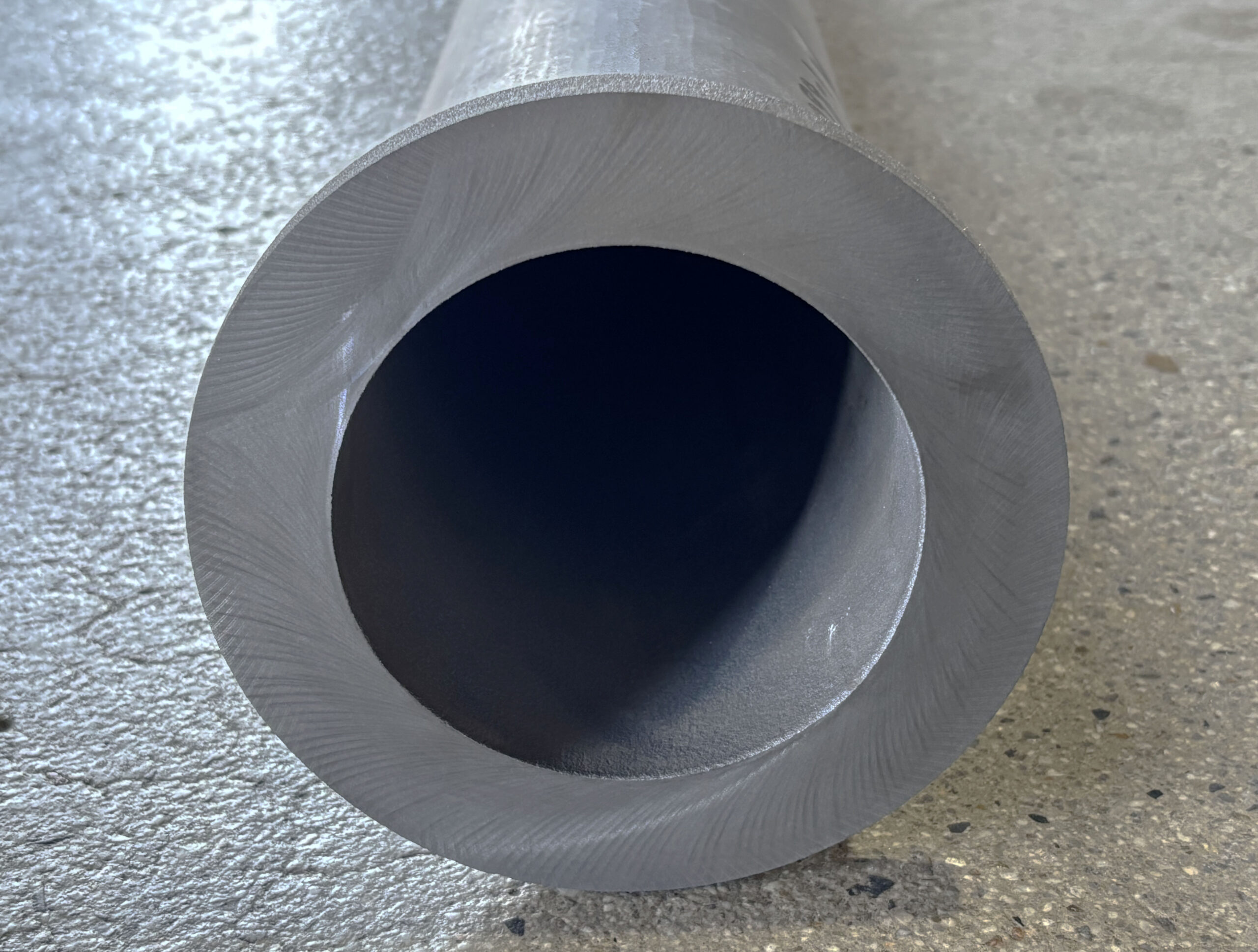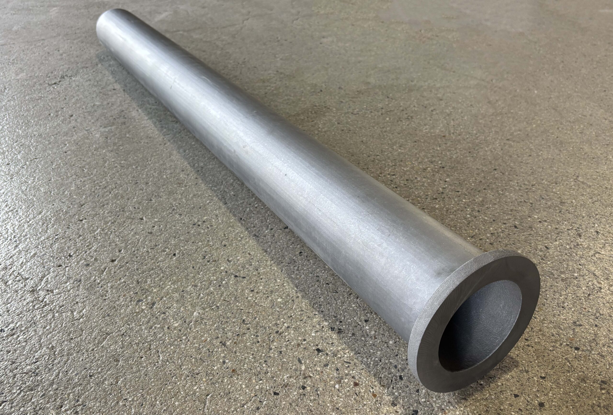 Si-SiC(反応焼結SiC)ヒーターチューブ・保護管で、雰囲気炉や真空炉で使用される場合にはフランジ部分のシール性が要求されます。下写真:チューブサイズφ119xL1400mm フランジ外径φ155mm