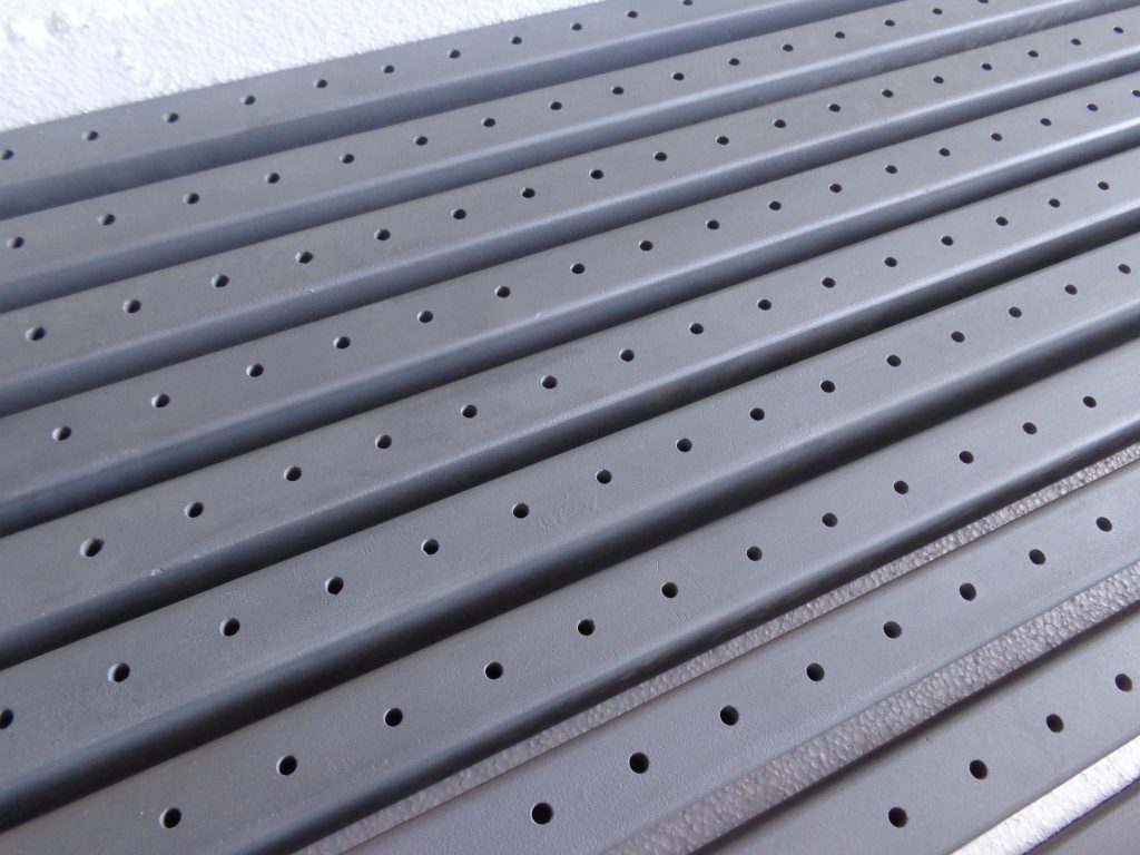 更にSi-SiC支柱に多数の穴が開いており細いSi-SiCビームを通す事で棚組の高さを細かく変えられる仕様にはなっていますが、実際の現場では製品高さに応じて棚組の高さを変えるところまでの作業はしていませんでした。